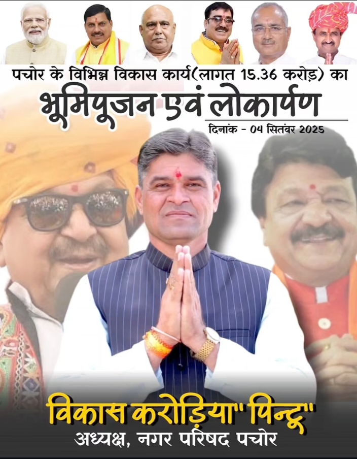 पचोर को मिली 15 करोड़ 35 लाख रुपए के विकास कार्यों सौगात, मंत्री श्री कैलाश विजयवर्गीय ने किया भूमिपूजन व लोकार्पण” नगरीय विकास एवं आवास मंत्री श्री कैलाश विजयवर्गीय ने पचोर में 15 करोड़ 35 लाख रुपये की लागत के विभिन्न विकास कार्यों के भूमिपूजन एवं लोकार्पण का भव्य कार्यक्रम आयोजित किया गया।