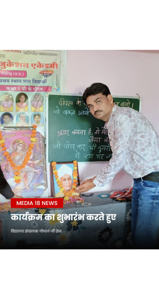 विद्यालय की प्रधान अध्यापिका श्रीमती मोनिका यादव वाइस प्रिंसिपल सुश्री शीतल मुंदेरिया स्कूल समिति अध्यक्ष सुश्री नीतू उमठ वरिष्ट शिक्षिका श्रीमती कविता वर्मा सुश्री निकिता परमार श्रीमती पूजा रुहेला सुश्री सलोनी कुरैशी सुश्री प्रिया उमठ की गरिमा में उपस्थिति में आज का शिक्षक दिवस सम्मान समारोह सफल हुआ सभी बच्चों का बहुत-बहुत धन्यवाद सभी अतिथियों का आभारसंचालक गोपाल सिंह सेन निशाना ने किया