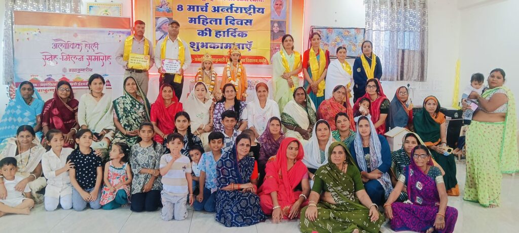 पचोर। प्रजापिता ब्रह्माकुमारी ईश्वरीय विश्वविद्यालय परमात्मा अनुभूति भवन में अंतरराष्ट्रीय महिला दिवस के अवसर पर रंगोत्सव कार्यक्रम मनाया गया। जिसमें बड़ी संख्या में महिलाओं ने भजन एवं नृत्य किया तथा एक दूसरों को गुलाल लगाया। वही राधे कृष्ण की झांकी भी बनाई गई। जिसमें ब्रह्माकुमारी मोनिका दीदी महिलाओं को आध्यात्मिक संदेश देते हुए कहा कि आज के समय में नारियों को अपनी शक्तियों को जागृत करना बहुत आवश्यक है उन्हें आध्यात्मिकता की ओर बढ़ना चाहिए क्योंकि समाज में नकारात्मकता बढ़ती जा रही है जिसके कारण नैतिकता का पतन हो रहा है। जब माताएं आध्यात्मिक होगी तो अपनी शक्तियों को पहचानेगी और समाज को सकारात्मक दिशा देकर भारत को विश्व गुरु बनाने में अपना सच्चा योगदान दे सकेगी। वहीब्रह्माकुमारी वैशाली दीदी ने कहा कि नारियां जितना सकारात्मक चिंतन करेंगे उतना ही उनके घर का वातावरण शुद्ध और पवित्र होता जाएगा बच्चों को सशक्त बनाने में उनका ही हाथ होता है कहते हैं जैसा कर्म हम करेंगे हमें देखकर और करेंगे इसलिए घर में मिलजुल कर शुभचिंतक बने व्यर्थ और फालतू बातों में समय न गवाए। बच्चों को महापुरुषों जैसे शिष्टाचारी कर्तव्य परायण और साहसी बनाएं। कार्यक्रम के अंत में प्रसादी वितरण किया गया।